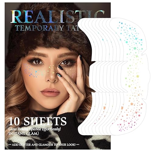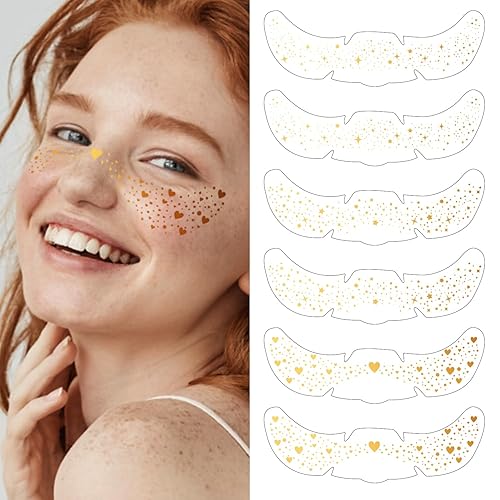 【Glitter Freckles Set Package Contents】: This glitter tattoos set includes 3 designs(1.96 x5.91in), featuring 6 multi-colored fazit glitter freckles face tattoo stickers for a subtle, natural makeup as well as sparkling designs in shapes like hearts, stars, perfect for parties! As party accessories, a wild party. These coachella outfits for women stickers are made with safe ingredients, so there's no need to worry about skin irritation