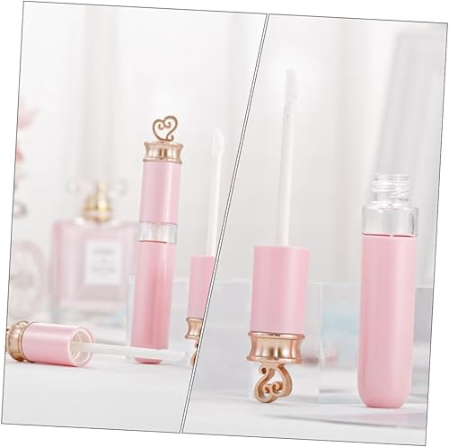 6Pcs Pink Heart Lip Gloss Tubes Empty DIY Cosmetic Containers Reusable Lightweight Portable Lip Oil Bottles for Travel and Gifts