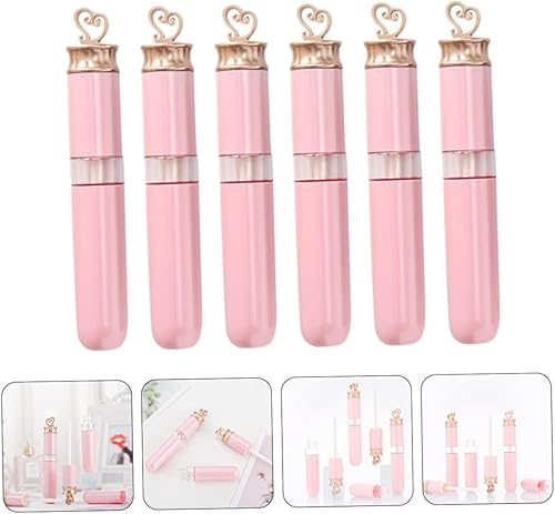 6Pcs Portable Pink Heart Lip Gloss Tubes Empty Lip Balm Bottles for DIY Lipstick Subpackaging Compact Lightweight Cosmetic Containers for Travel and Gifts