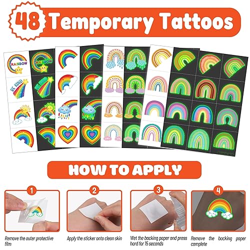 Perfect Rainbow Gifts for Kids: Ideal for goodie bags, classroom rewards, party favors, stocking stuffers, and more. Watch their eyes light up as they share the fun with friends and family! The pre-cut glow in the dark tattoos make it easy for kids to apply and trade without any hassle.
