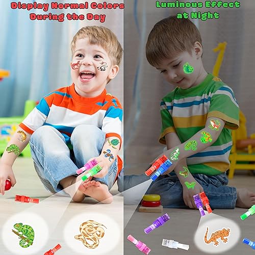 Complete Reptile Experience: This set delivers an immersive reptile experience with 8 LED light designs and 48 glow-in-the-dark tattoos. Whether it's for a birthday, a classroom science day, or a backyard exploration, these accessories let kids embrace their inner wildlife explorer.
