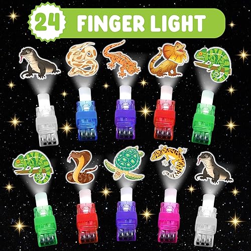 Durable & Kid-Friendly Design: Made from durable, child-safe materials, each LED light features a flexible rubber strap that fits comfortably on both small and large fingers. The waterproof tattoos are skin-friendly and designed to last through hours of reptile party. This product is intended for children aged 36 months and older.