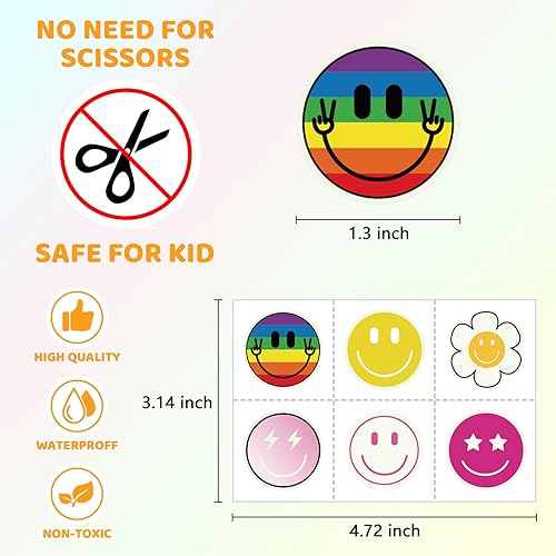 PACKAGE CONTENTS:72PCS smiling temporary tattoos measuring 1.3 inches each, perfect for parties and events with multiple guests