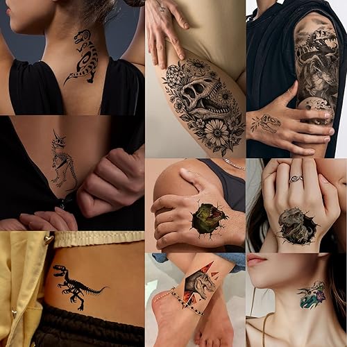 【Large Quantity Temporary Tattoos】: Our our Dinosaur temp tattoos for kids adults includes totally 77 sheets that has different designs such as Cute Colorful Dinosaur Tattoo, Sauropod Dinosaur Tattoo,Triceratops Dinosaur Tattoo,T-Rex Arm Dinosaur Tattoo,Raptor Claw Dinosaur Tattoo,T-Rex Skull Dinosaur Tattoo, Triceratops Dinosaur Tattoo, T-Rex Seahorse Dinosaur Tattoo,T-Rex Crystallized Skull Tattoo , Velociraptor Dinosaur Tattoo.