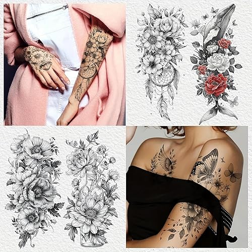 Comment on "79 Sheets Temporary Tattoos for Adult Women, 15 PCS Large Black Flowers Fake Tattoos Sleeves, 3D Realistic Semi Permanent Tattoo Stickers"