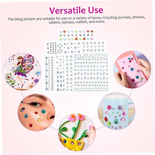 Variety pack: this face rhinestone set offers a diverse selection of glitter stickers and rhinestones, suitable for various decorative needs, from makeup to crafts,mermaid face gems stick,bling face gems