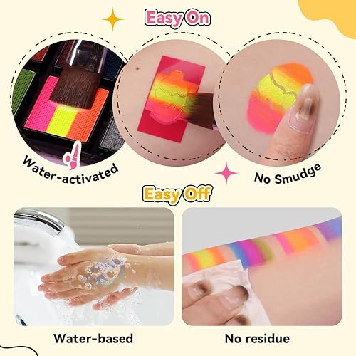 【Easy Clean】The face paint for kids is completely water-based, so it is easy to clean and can be removed with warm soapy water, a damp cloth, or makeup remover