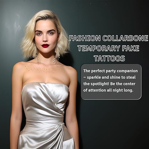 Gold Collarbone Temporary Tattoos:Adorn your collarbone with elegant gold glitter flecks and artful irregular dots. These unique stickers enhance your collarbone contour, creating a beautifully sculpted look for a naturally elegant appearance that highlights your grace.