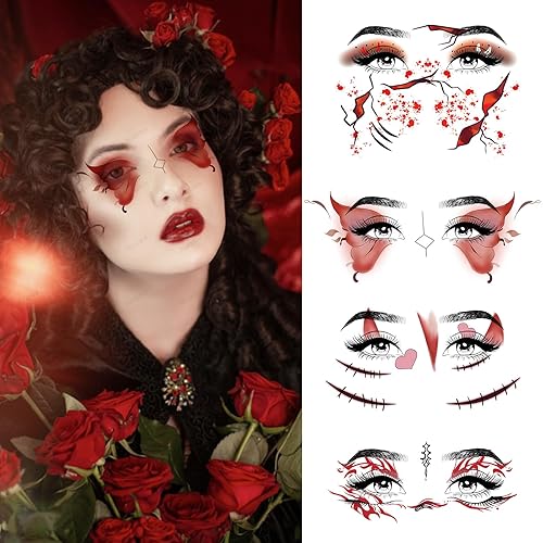 Package Includes: You will get 8 Sheets waterproof Halloween face tattoos with different designs, match it with Halloween costumes, Halloween fancy dress, which are perfect suitable for Halloween Celebrations coming