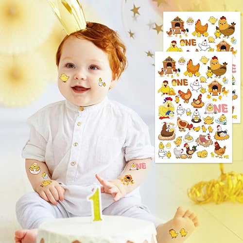 8 Sheets Chicken Temporary Tattoos 200+ Yellow Chicken Birthday Party Decorations Girls Boys This Chick Is One Birthday Temporary Tattoos Farm Animals Theme Party Favors Supplies Prizes Rewards