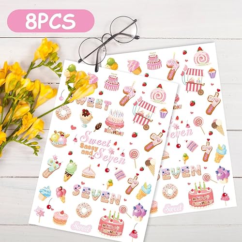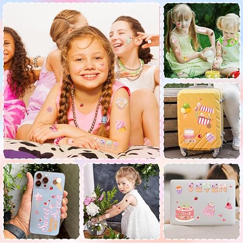 What You Will Receive: You will receive 8 sheets of sweet sassy and seven birthday temporary tattoos, each 23×16 cm(9×6 inches), with 200+ designs fun ice cream tattoos and sweet donut stickers—perfect for celebrating a girl’s happy 7th birthday