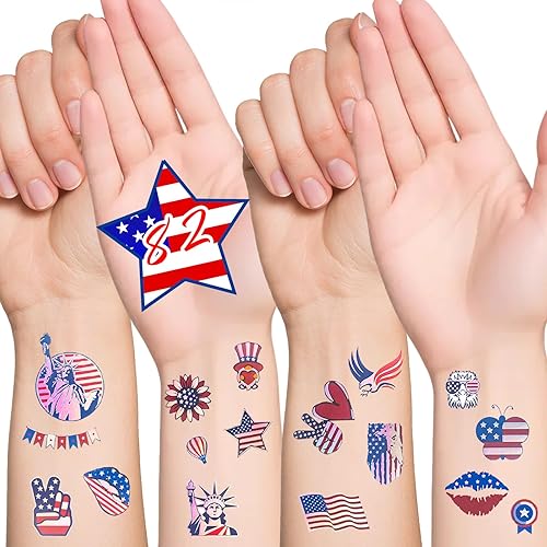 Comment on "82 PCS Glitter 4th of July Temporary Tattoos American USA Flag Patriotic Fake Tattoo Sticker Red White and Blue Party Supplies for Kids Women Men Memorial Day, Independence Day, Labor Day(91PCS Classic)"