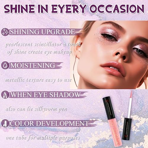【Versatile Use】The moisturizing liquid texture makes it adhere smoothly and thinly on your eye area and easily create a bling and crystal Korean makeup effect. Use alone, over eyeshadow, or along the lash line for stunning results without needing advanced eyeshadow skills