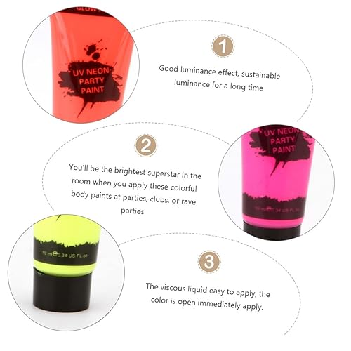 Washable luminous face paints--convenient and easy to clean, do not have to worry about clothes or furniture,Safe Luminous Bodypaint