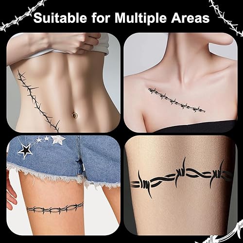 【Versatile Occasions】: Ideal for fake tatoo enthusiasts, these barbed wire designs are perfect for concerts, festivals, and Halloween parties. Pair with a pamela anderson costume for a standout look.