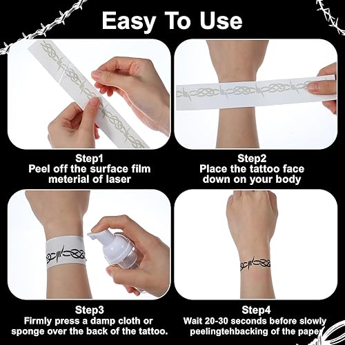 【Safe & Durable】: Made from non-toxic materials, our fake barbed wire tattoos meet safety standards, ensuring they're suitable for all skin types. Enjoy long-lasting wear without irritation.