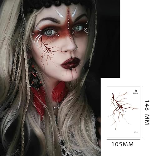 Package Includes: You will get 9 sheets distinct horror-themed, bloody vascular cracks tattoos that appear incredibly lifelike and natural, you can customize your own tattoo style. Each sheet measures 148 x 105 mm, good for adorning various body parts