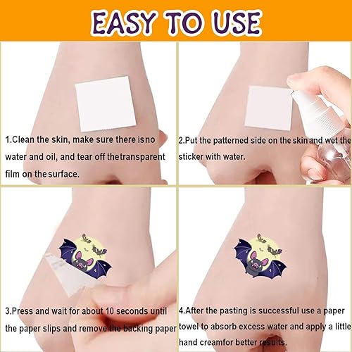How to Use: Cut each bat tattoo sticker out of sheets and remove the sheet clearly. You can stick it on hands, face, arms or wherever you feel safe. Moreover, you put it down on glasses, clothes, and a smooth flat. After that, you wet it thoroughly with water and wait for 20-30 seconds, you get rid of the backing paper.