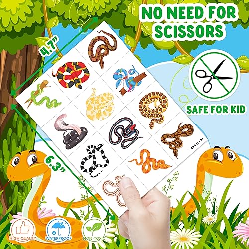 Creative and Fun: This Cute Snake Reptile Animals Jungle Swamp Safari Pre-Cut temporary tattoos set includes a variety of playful and cute designs, encouraging your child's imagination and creativity. Bring nonstop joy to the whole birthday or party. Make your kids receive full of expectation and exploration in every festival.