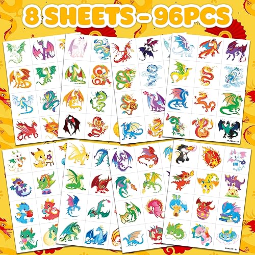 Perfect for East and West Dragon Birthday Party Decorations Supplies & Events: Great for themed party, birthday activities, school reward and other party events. This tattoos stickers can be applied on arms, hands, face, neck, shoulders,... to make you look cool at all kinds of party. Popular hit with your kids. You can apply them to your body or some smooth objects, for example, glass, laptop, paper, cups, bottle,..