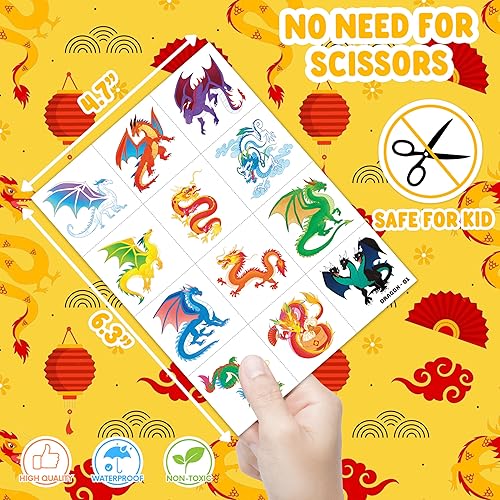 Creative and Fun: This East and West Dragon Pre-Cut temporary tattoos set includes a variety of playful and cute designs, encouraging your child's imagination and creativity. Bring nonstop joy to the whole birthday or party. Make your kids receive full of expectation and exploration in every festival.