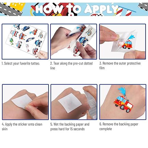 Perfect for Emergency Transportation Ambulance Fire Truck Police Car Rescue Helicopter Rescue Boat Birthday Party Decorations Supplies & Events: Great for themed party, birthday activities, school reward and other party events. This tattoos stickers can be applied on arms, hands, face, neck, shoulders,... to make you look cool at all kinds of party. Popular hit with your kids. You can apply them to your body or some smooth objects, for example, glass, laptop, paper, cups, bottle,..