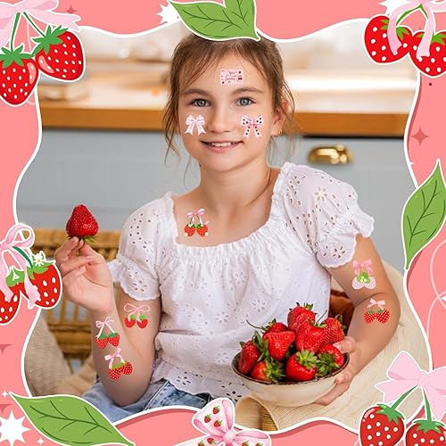 Widely Application: Pink bow strawberry tattoos are perfect for strawberry party, pink bow strawberry party, pink bow strawberry birthday party, berry sweet birthday party, summer fruit party, bridal shower, wedding, classroom rewards, goodie bag fillers, which will be sure to bring a vibrant atmosphere to any party scene, also very attractive for daily use, lovely accessories for bow strawberry lovers