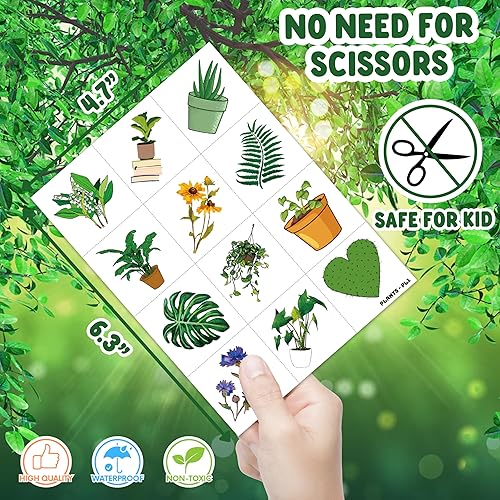 Pattern rich: Plants Save The Earth Day Environment Tree Flowers Temporary Tattoos include 8 Sheets 96 PCS, the size of each sheet is 6.3 * 4.7 inches. Easy to share,even if a lot of people's parties, you can have a different tattoo with others.These adorable tattoos will keep you and your little ones – and their friends – occupied for a while.