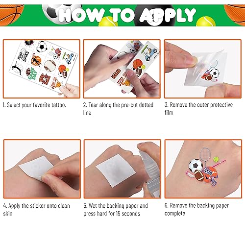 Perfect for Sports Balls Baseball Football Soccer Basketball Volleyball Tennis Pickleball Birthday Party Decorations Supplies & Events: Great for themed party, birthday activities, school reward and other party events. This tattoos stickers can be applied on arms, hands, face, neck, shoulders,... to make you look cool at all kinds of party. Popular hit with your kids. You can apply them to your body or some smooth objects, for example, glass, laptop, paper, cups, bottle,..