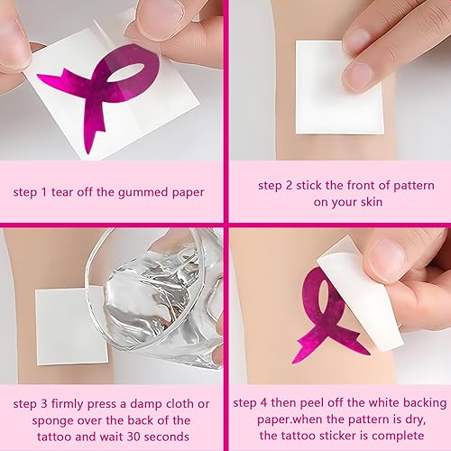 Easy to Apply and Long-lasting: to apply, simply cut out the desired pattern, peel off the protective film, wet the tattoo with water, and press firmly for about 20 seconds. For best results, avoid contact with water for the first 2 hours. These breast cancer stickers are designed to stay vibrant and intact for as long as possible
