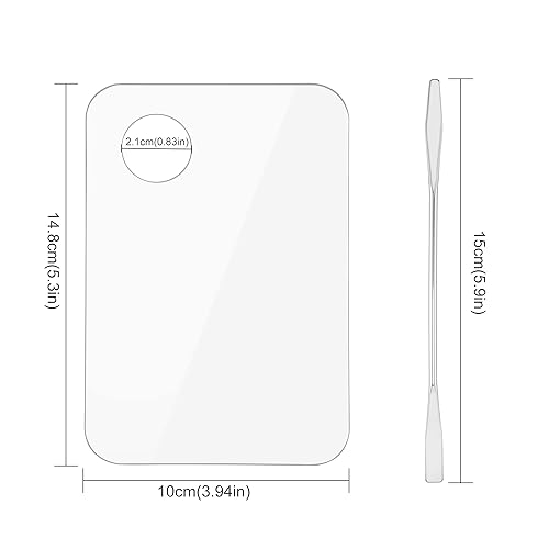 Acrylic Material: Foundation mixing tray is acrylic material. Clear color display, beautiful, direct color comparison. Friction-resistant, non-cracking, non-breakable, easy to clean, and durable. The spatula is a double-ended design made of high-quality 410 stainless steel, super sturdy