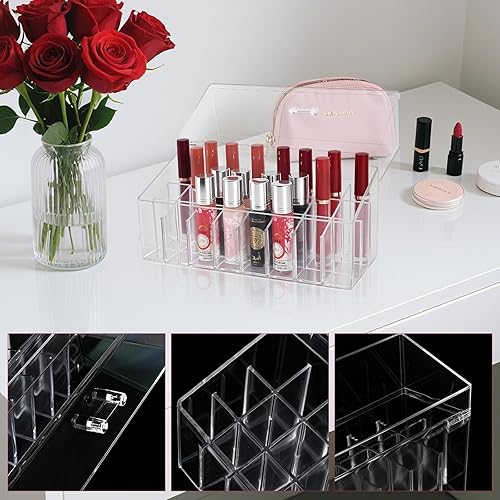 Comment on "Acrylic Lip Gloss Organizer & Lipgloss Organizer for Drawer, Cosmetics Pallets Countertop Clear Storage,18 Space Organization Container Storage for Tall Lip Gloss"