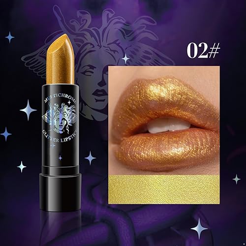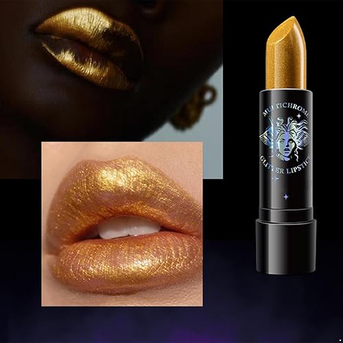 ACSUSS Sparkling Diamond Lipstick Highly Pigmented and Smudge Proof for Costume Parties Stage Performances Special Events Gold One Size(Gold,One Size)