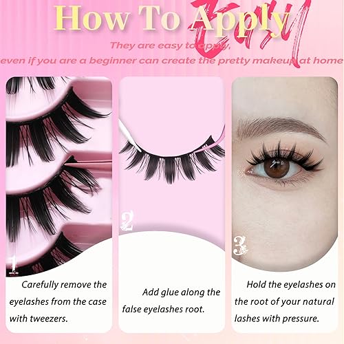 High-quality Eyelashes: These false eyelashes are no cruelty and made of imported fibers, making them look more natural and vivid. These manga lashes are soft and lightweight, which are comfortable to wear.