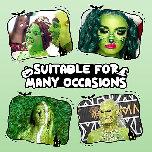Suitable for Multiple Occasions: The green face paint set is perfect for Halloween, stage performances, school carnivals, themed costume parties, cosplay, theater performances, unleash your imagination and creativity to creative a unique makeup look