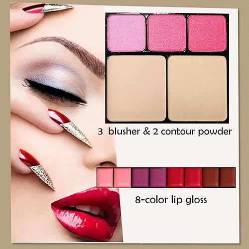 Makeup Gift Set: One set can solves full face makeup.Our multipurpose makeup kit contains 36 eyeshadow, 8 lip gloss, 3 Blusher, 2 Contour Powder, 4 Brushes, 1 Mirror, 12 Brushes.Let you easily create the perfect makeup.