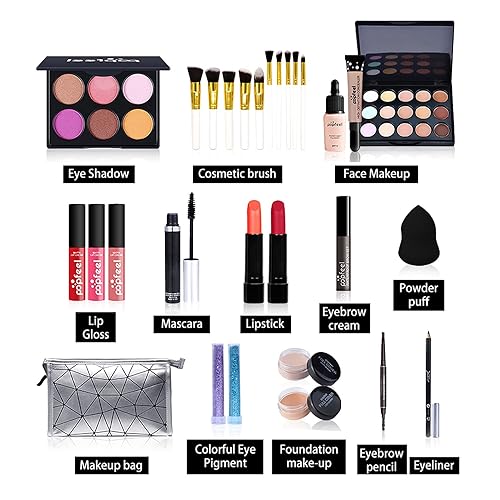 Makeup Gift Set: One set can solves full face makeup.Our multipurpose makeup kit contain makeup brush set,eyeshadow palette,lip gloss set, makeup bag,eyebrow pencil,face makeup and concealer, etc, which can meet all your makeup needs.Let you easily create the perfect makeup.