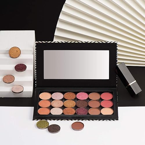 DIY Magnetic Makeup Palette: you can collect your favorite eyeshadow,lipstick,blush,powder which in storage in metal iron pans into this black magnetic makeup palette.PLEASE make sure your eyeshadows or makeup storage in METAL iron pans,so that it will works with this magnetic makeup palette. If your eyeshadows or makeup did not storage in metal iron pans,you need to use metal stickers( 20Pcs Adhesive Empty Palette Metal Stickers included ) to use it.