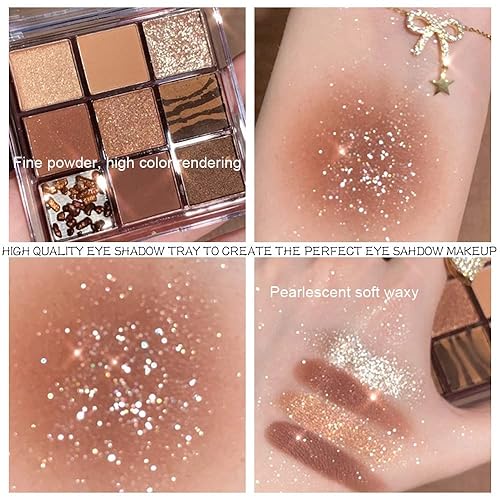 AMY'S DIARY Matte Shimmer Eye Shadow Palette Makeup,Eyeshadow Long Lasting Waterproof Cruelty-Free, 9 Blendable Shades in Smooth Matte and Shimmer Finishes with Gorgeous Pearls for Girls (03#)(brown)