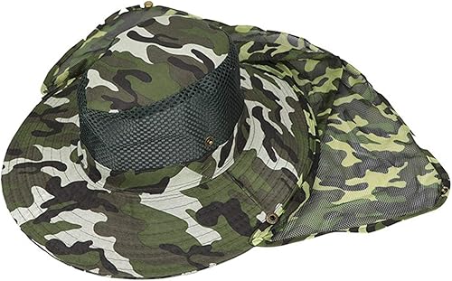 Andongnywell Fishing Outdoor Sun Hat Removable Neck Face Flap Cap Mesh Sun Protection Bucket Cap for Sports Travel(Camouflage 3,One Size)