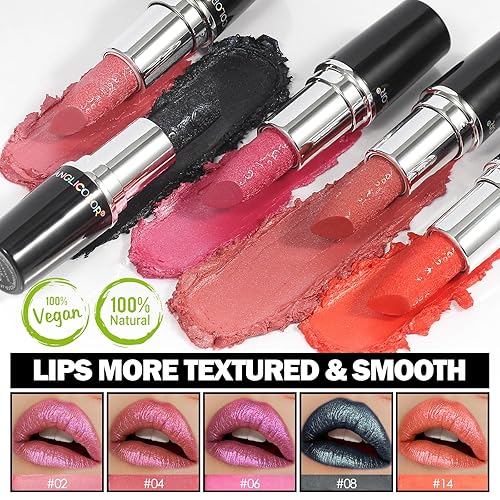 Anglicolor Glitter Metallic Pink Lipstick,High Impact Lipcolor,Lightweight Hydrating Formula Smooth and Non-Sticky,Peach Lipstick For Women,Full-Coverage Lip Makeup (02 PINK GEMSTONE, 4g)(#06 RED VIOLET)