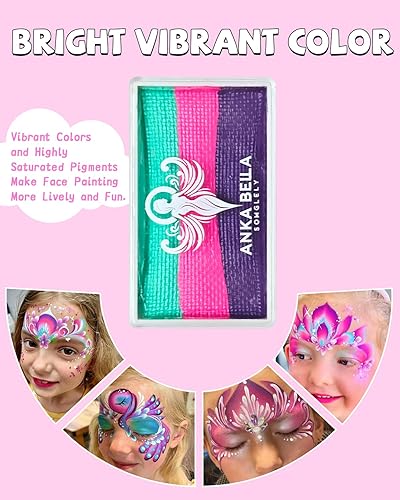 Anka Bella Professional Water Activated 1-Stroke Split Cake Face Paint(Frozen)30gm,Hypoallergenic, Non-Toxic,Face Body Painting Makeup(Butterfly Flower)