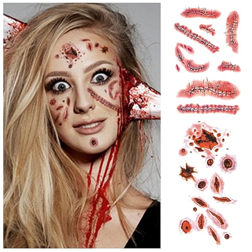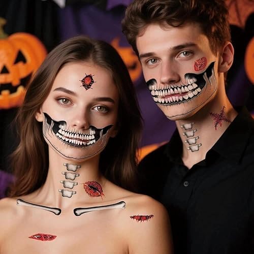 Halloween Party Favors: These Halloween 3D fake scars tattoo are easy to apply and allow you to feel the joy of Halloween. The tattoo stickers stay on for 3-5 days, giving you plenty of time to celebrate and enjoy the Halloween.