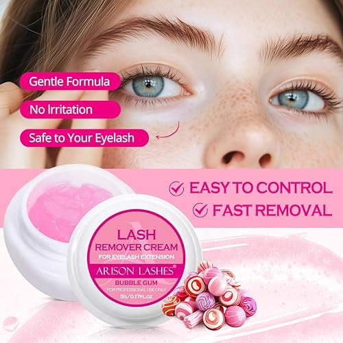 ARISON LASHES Lash Remover For Eyelash Extension Cream Remover Low Irritation Cream Remover for Sensitive Skin Fast Dissolution Professional Eyelash Extensions Salon Use(Unscented)(Bubble gum)