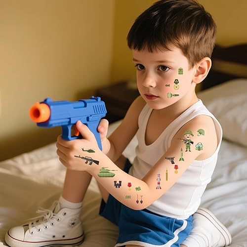 Safe and Skin-friendly: These army tattoo stickers are made of skin-safe materials, gentle on delicate skin, with beautiful patterns, safe for children, kids and teenagers, can be firmly fixed where you want, and ensure that they can be easily removed when needed