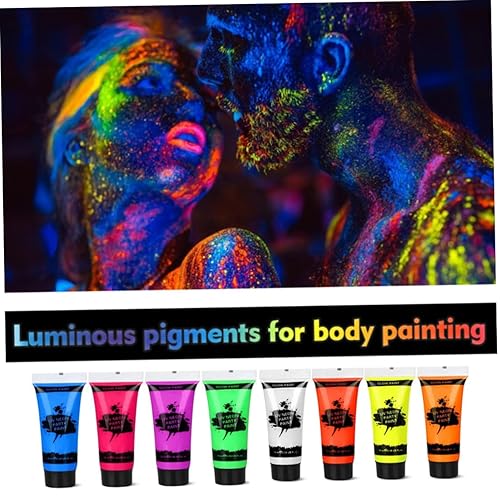 Glows Brightly under UV Light: This neon paint can glow brightly under UV light at night, there are eight different colors, with brushes and palettes, you can DIY the patterns you want, stand out from the crowd, and be the brightest person in the party. It's also a good choice for Halloween.