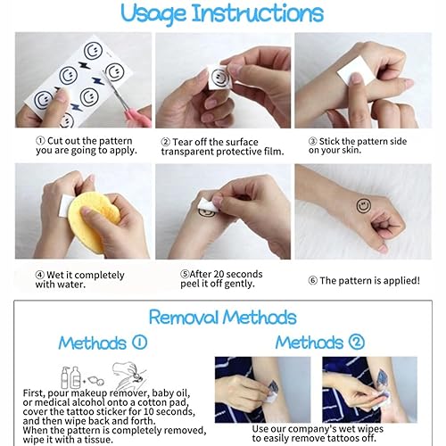 Peel off the clear protective paper and apply the front side to your skin, wet it with a damp towel or sponge for 10-20 seconds and peel it. And it is easily clear off by rubbing with alcohol or body oil.