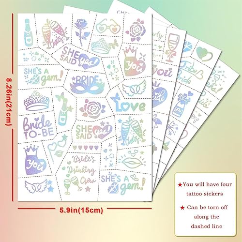 A fun addition to any bachelorette party, engagement or bridal shower decoration! Each sheet measures 8.26 " x 5.9 " creating the perfect size tattoos!