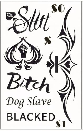 BBC Queen of Spades QoS 4 Sheets Temporary Tattoos Sticker SEX BDSM Total 57counts(15X21cm) Cuckold Queen of Spades QoS Hooker DIRTY Chinese Japanese Phrases