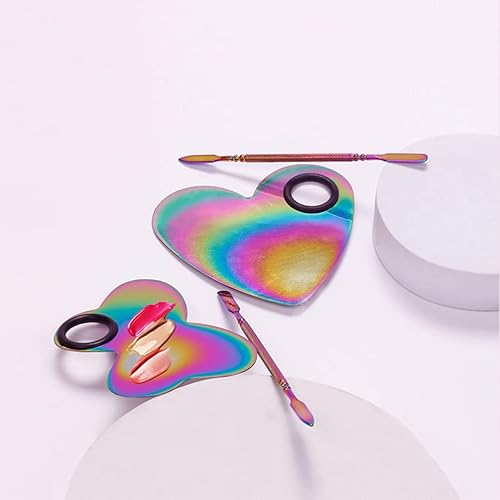 Beaupretty Heart Shaped Mini Makeup Mixing Palette with Stainless Steel Spatula for Nail Polish and Foundation Color Blending Tools